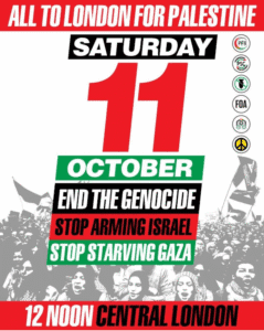 Join us on 11 October to march again for Palestine to mark two years of Israel’s genocide against the Palestinian people and to demand that our government take immediate action to stop arming Israel.